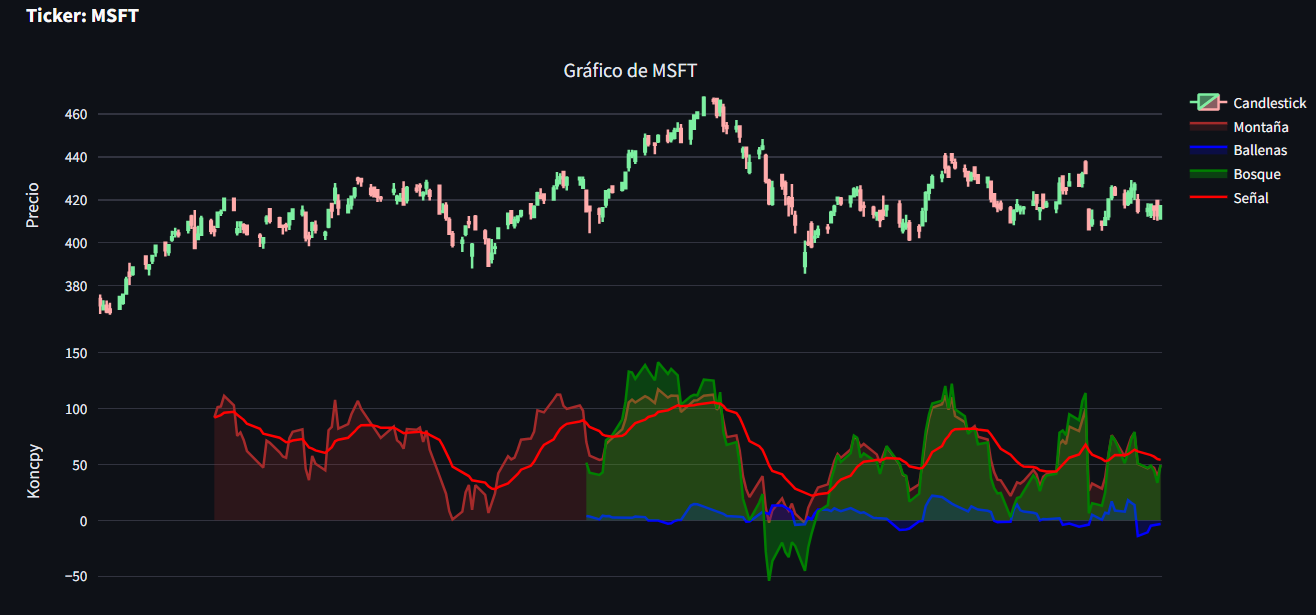KoncorPy es una copia del famoso indicador Koncorde escrito en Python. Es un indicador personalizado